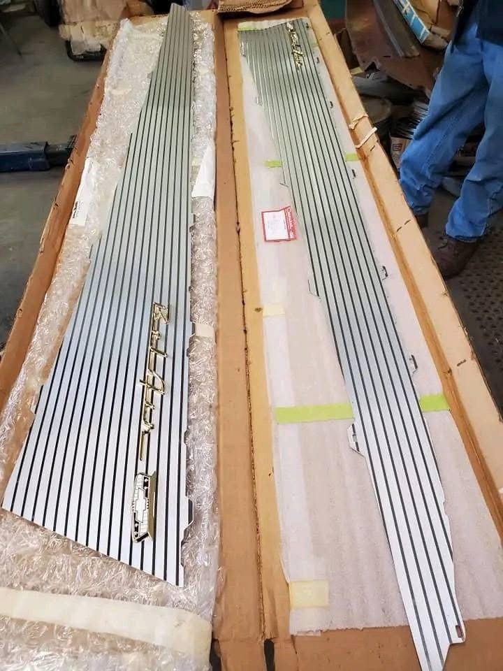 Aluminum grooved quarter panel insert for 1957 Chevrolet 4 Door Belair models. These are custom made with no holes or emblems. This is a special order item, availability may vary.